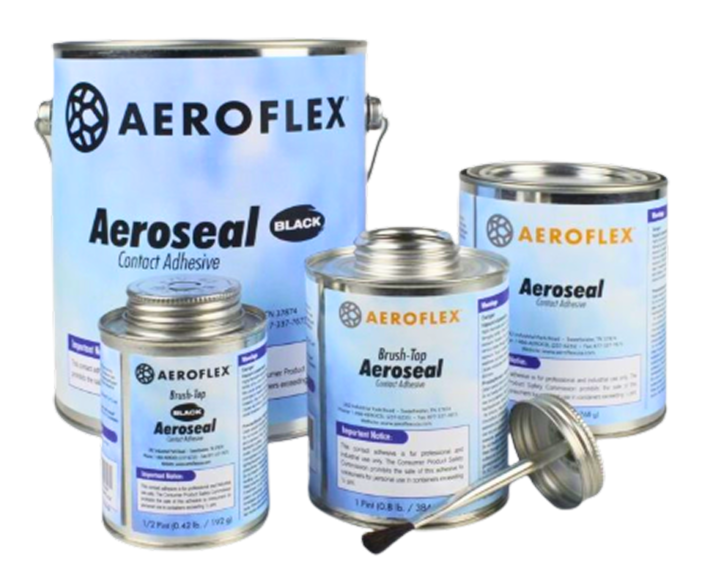 Aeroseal is a solvent-based contact adhesive specially formulated for vapor-sealing adjoining seams of AEROFLEX EPDM™ tube, sheet and roll insulation and also for bonding AEROFLEX EPDM™ insulation to a variety of flat and curved surfaces. Provides immediate bond to metal, PVC melamine and other approved substrates. Suitable for continuous operating temperatures up to 257°F (125°C) on piping and 200°F (93°C) sheets & rolls.